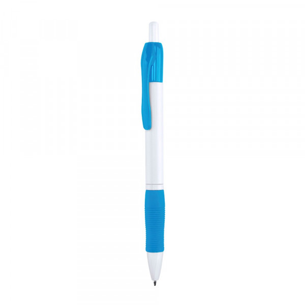 Klassischer Druck-Kugelschreiber mit auffälligem Design und solidem, weißem Schaft mit komfortablem Griff und farblich passendem Clip. Blaue Tinte.