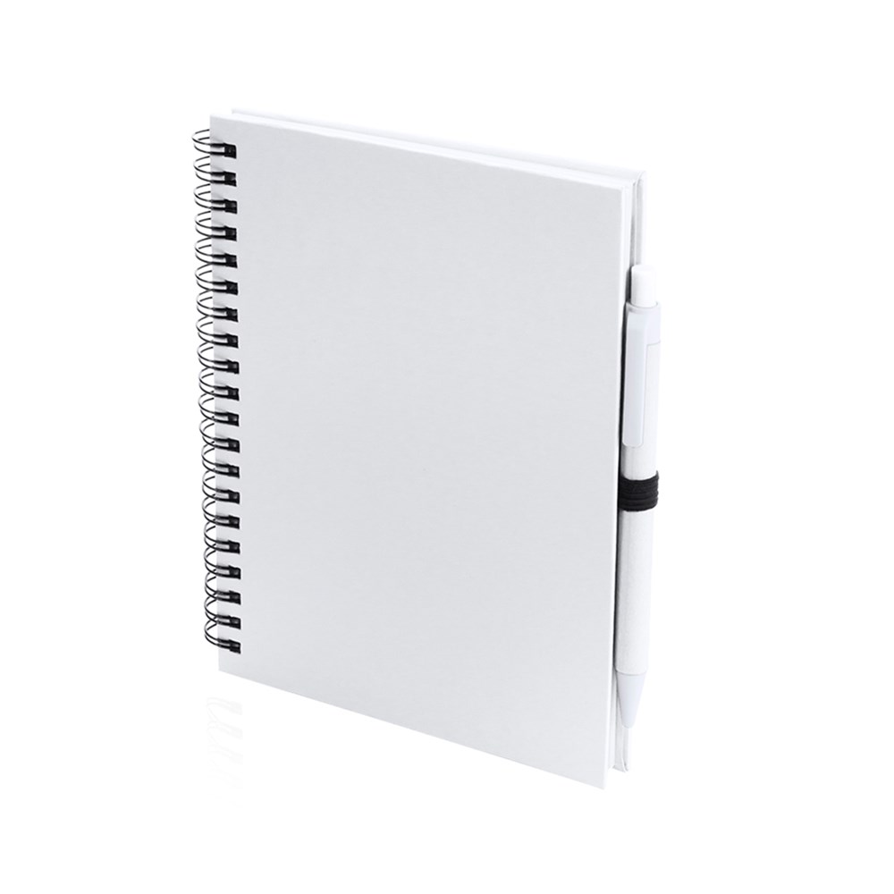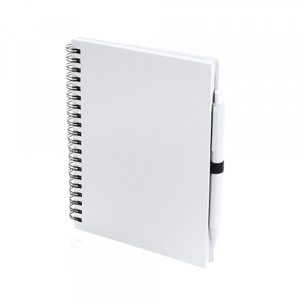 Set aus Notizbuch und Kugelschreiber. Ring-Notizbuch mit Soft-Touch-Einband aus recyceltem Karton und passendem Kugelschreiber. Enthält 70 unbedruckte Seiten mit Stifthalter. Erhältlich in einer großen Auswahl an Farben.