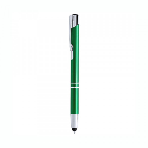 Druck-Kugelschreiber mit Stylus aus glänzendem Aluminium in lebhaften Farben. Jumbo-Patrone mit blauer Tinte.
