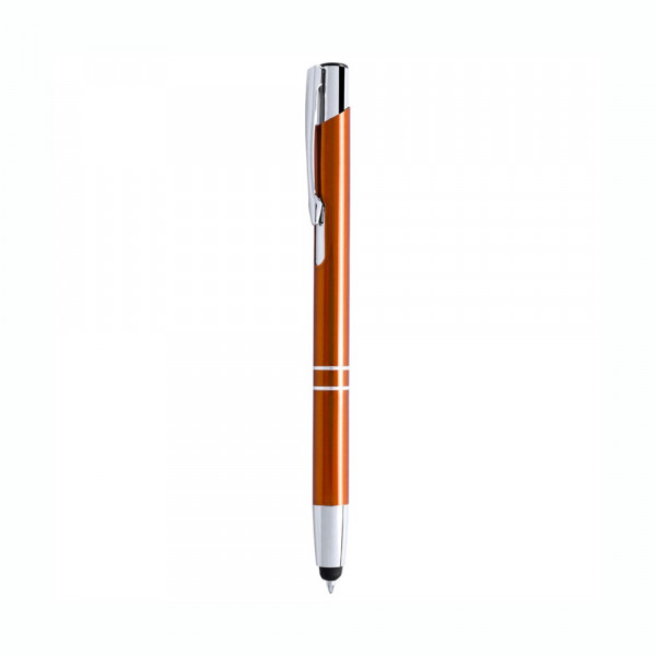 Druck-Kugelschreiber mit Stylus aus glänzendem Aluminium in lebhaften Farben. Jumbo-Patrone mit blauer Tinte.