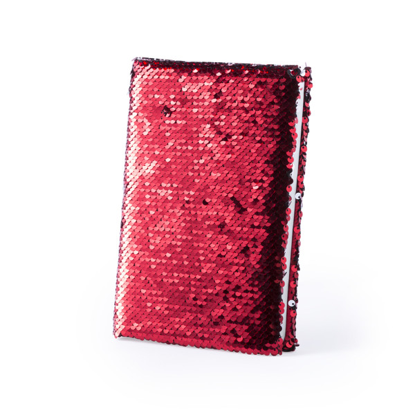 Interaktiver Pailletten-Notizblock in auffälligen Metallic-Farben. Wenn Sie mit dem Finger über... mehr