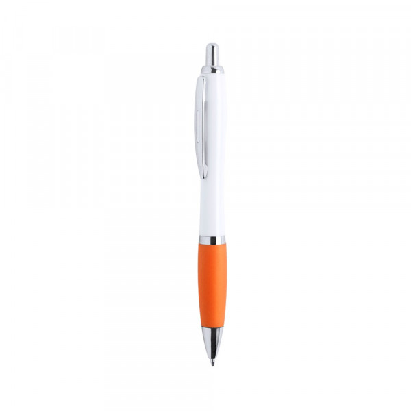 Druck-Kugelschreiber mit zweifarbigem Design und Schaft in Weiß. Mit verchromten Kontrastdetails, Metallclip und Griff in einer Vielzahl von auffälligen Farben. Blaue Tinte.