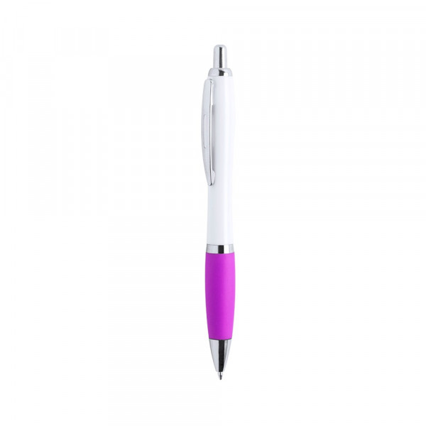 Druck-Kugelschreiber mit zweifarbigem Design und Schaft in Weiß. Mit verchromten Kontrastdetails, Metallclip und Griff in einer Vielzahl von auffälligen Farben. Blaue Tinte.