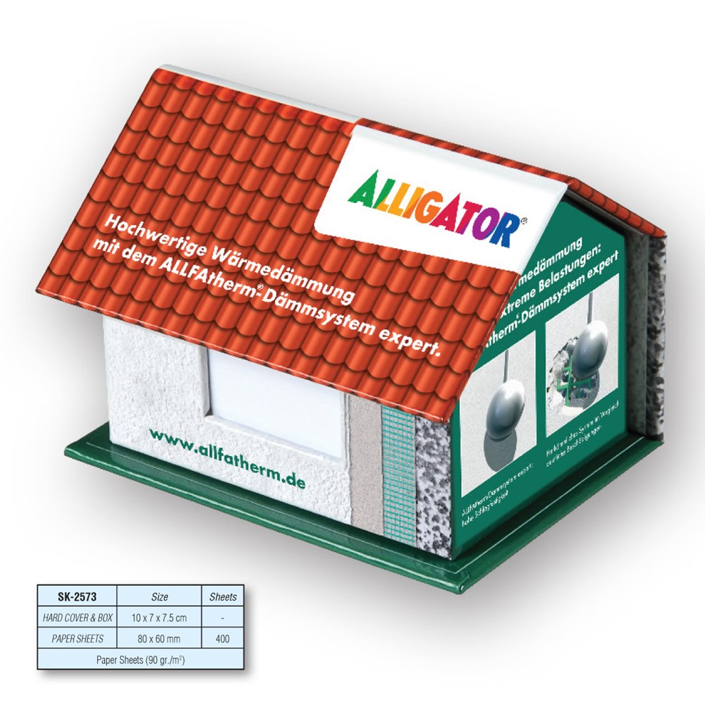 Hardcover-Haus 10 x 7 x 7,5 cm - 4/0c - CMYK Notizblätter 80 x 60 mm - ca. 400 Blatt - 1-2/0c... mehr