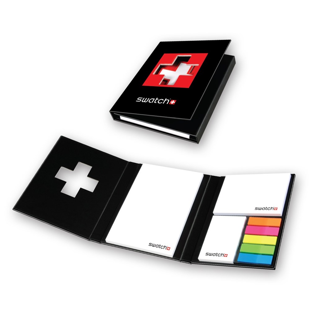 Hardcover-Booklet 12,5x16 cm mit Notizblock, Haftnotizen und Indexstreifen