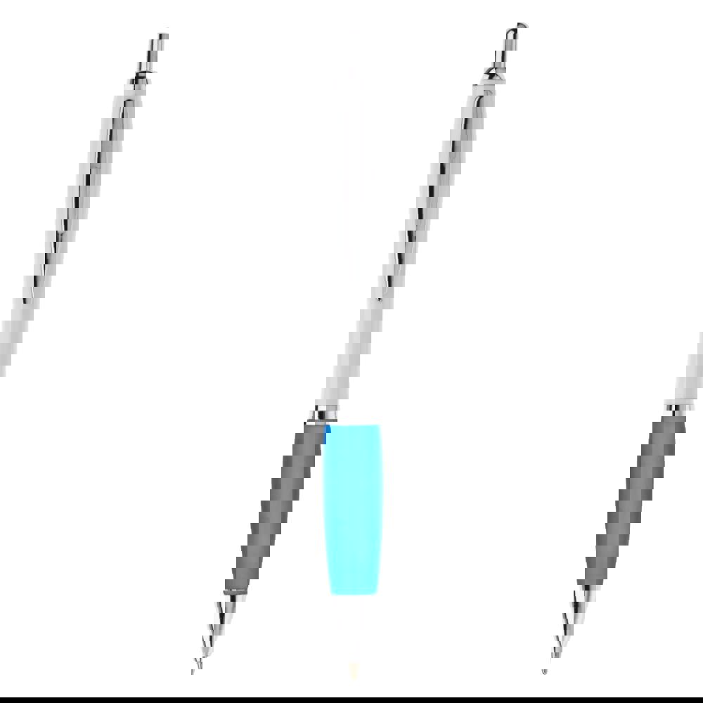 Weißer Kugelschreiber mit Metallclip, metallisierter Drücker, Ring und Spitze. Blauschreibende... mehr