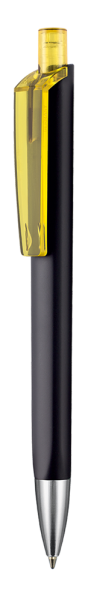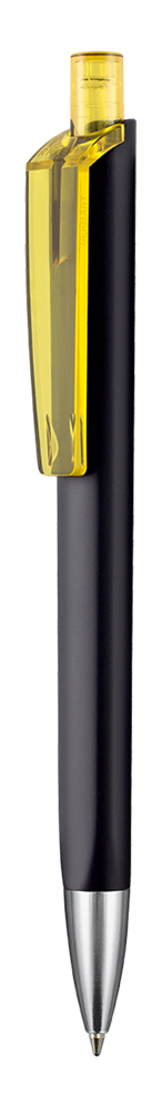 Hochwertiger Druckkugelschreiber hergestellt in Deutschland. Ergonomischer, dreieckiger Schaft garantiert ermüdungsfreies Schreiben. Großer, stabiler Clip bietet viel Platz für Werbeanbringung. Der dickwandige Schaft garantiert ein wertiges Gewicht dieses außergewöhnlichen Schreibgerätes. Soft-Touch-Oberfläche und hochglänzender Clip und Drücker unterstreichen seine Wertigkeit. Ausgestattet ist dieser Kugelschreiber mit einer Qualitätsmine ULTRA.