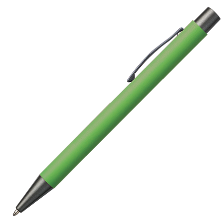 Der JAMAICA Metall-Kugelschreiber hat ein stilvolles Rubber-Finish und ist mit anthrazitfarbenen Details (Drücker, Clip und Spitze) versehen. Der Stift kann mit Lasergravur personalisiert werden und ist blauschreibend.