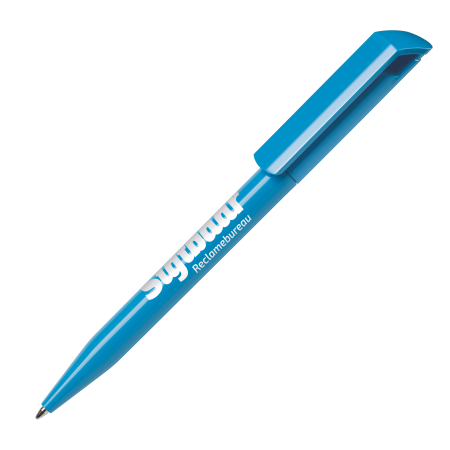 Dieser moderne, stilvolle Kugelschreiber mit Drehmechanik und auffälligem Clip wird dank seiner überzeugenden Optik die Wirkung Ihrer Werbebotschaft noch besonders verstärken. Er ist lieferbar in 20 soliden Farben, die bereits ab 2.000 Stück in Ober- und Unterteil miteinander kombinierbar sind. Er ist ausgestattet mit einer blauschreibenden Großraummine.