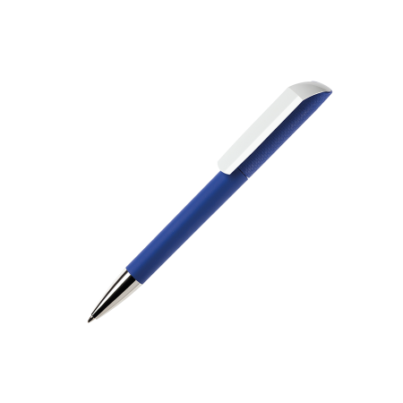FLOW F1 GOM CB CR Kugelschreiber Maxema, deckende Farben, gummiertes Gehäuse, strukturierte Kappe mit Seidenmatt-Finish, Clip in glänzendem Weiß, Spitze verchromt, blauschreibend