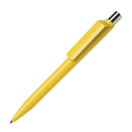Maxema-Kugelschreiber DOT D1 C CR mit glänzend farbigem Gehäuse und Clip, glänzend farbigem Element im verchromten Drücker. Ausgestattet mit einer Jumbo-Mine mit blauer Dokumental-Tinte für bis zu 2.500 Meter Schreibvergnügen. Gehäuse, Clips und das Element im Drücker sind in bis zu 20 Farben erhältlich, die pro Komponente ab 2.000 Stück miteinander kombiniert werden können.