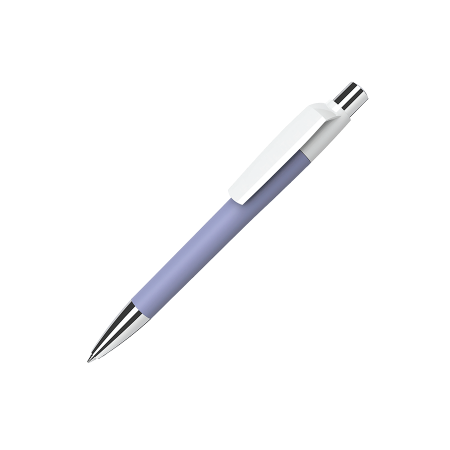 MOOD MD1 GOM CB M1 Kugelschreiber Maxema, gummiertes Gehäuse in deckenden Farben, Clip in glänzendem Weiß, Spitze und Druckknopf aus Metall in glänzende verchromt, blauschreibend. Alle Mood Metal-Modelle werden mit einer einzigen My Box-Hülle aus schwarzem Fedrigoni-Karton geliefert