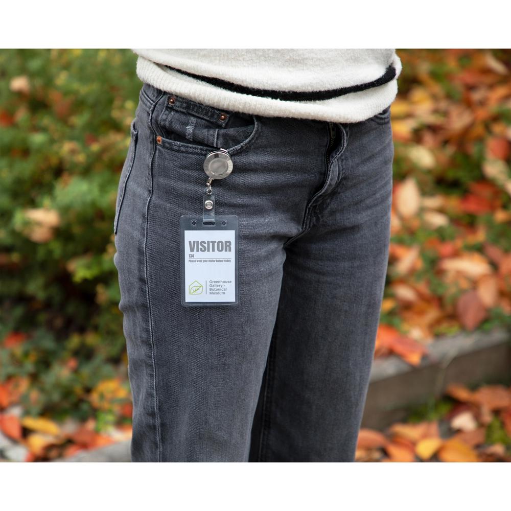 Der Edle. Halter mit Pull-Back-Funktion und Clip zum Befestigen der Ausweise. Inklusive Klammer zum Befestigen an der Kleidung.