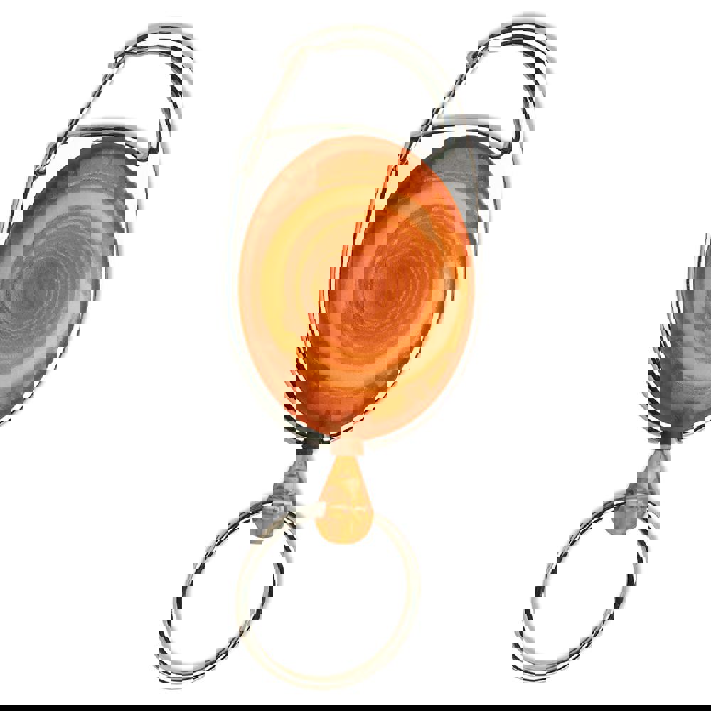 Gefrosteter Namensschildhalter mit Ausziehband (60cm) und Karabinerhaken.