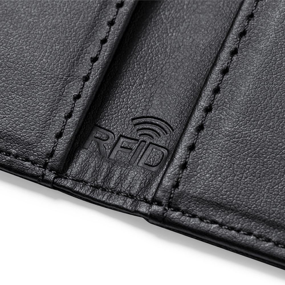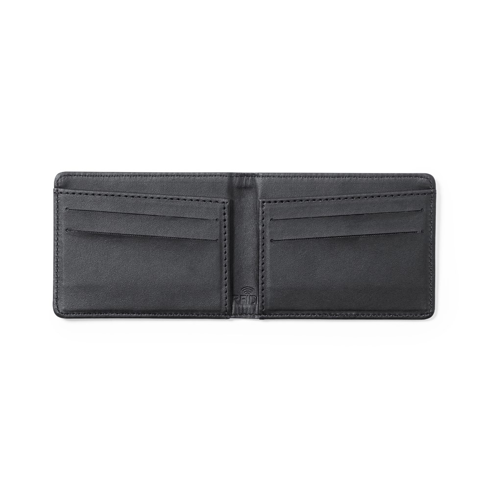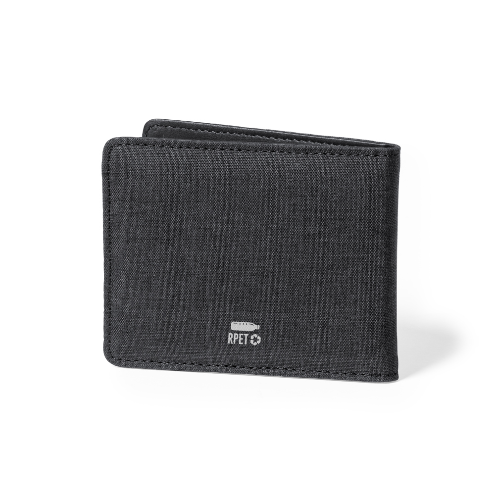Elegantes Portemonnaie und Kartenetui aus RPET-Polyester mit schwarzem Finish. Innen mit 6 unabhängigen Fächern für Karten und große Brieftasche. RFID (Radio Frequency Identification) Sicherheitstechnologie, die die Kartendaten sicher hält. Mit der Besonderheit von RPET außen und dem RIFD innen.RPET-Material wird aus recyceltem Kunststoff hergestellt, um die Wiederverwendung von Kunststoffabfällen zu fördern und die Nachhaltigkeit des Planeten zu unterstützen.