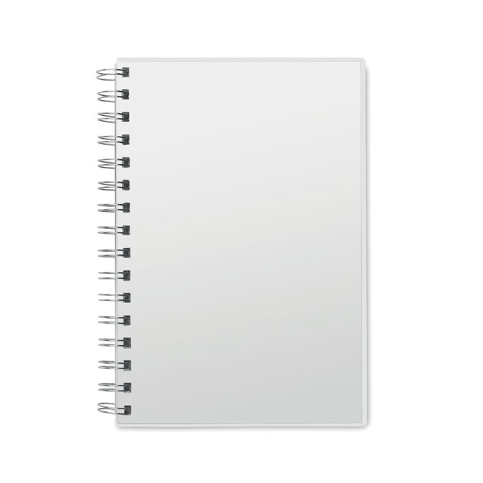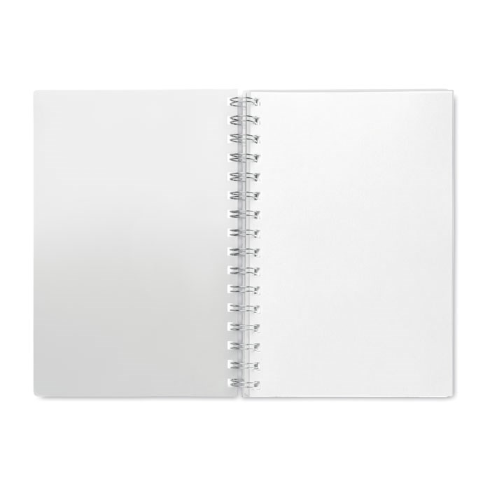 DIN A5-Notizblock. 80 Blatt liniertes Papier. Spiralbindung. Umschlag aus RPET.