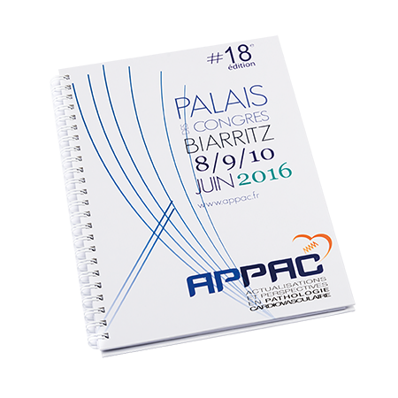 Hardcover-Notizbuch Wire-O A5 (80 Blatt), mit dem Umschlag vollfarbig bedruckt und den Papierblättern einseitig in 1 oder 2 Farben oder vollfarbig bedruckt.