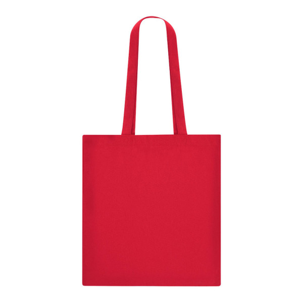 Tasche aus weicher Baumwolle 140g/m2. Mit 70 cm langen, verstärkten Henkeln, die in einer breiten Farbpalette erhältlich sind. Belastbar bis zu 10 kg Gewicht.