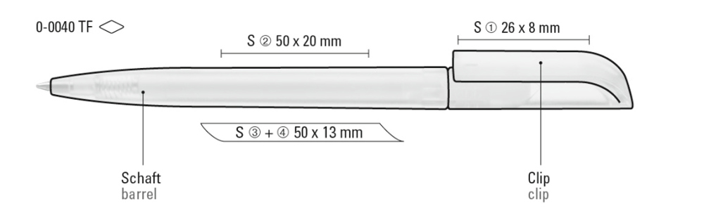 Drehkugelschreiber mit transparent gefrostetem Gehäuse.