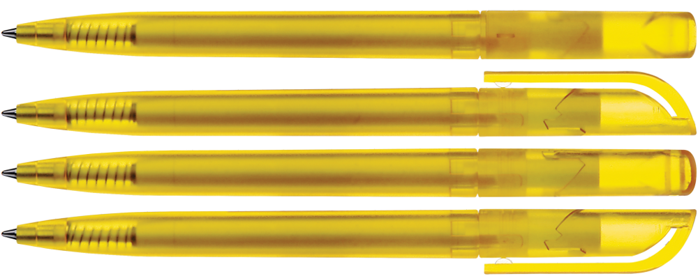 Drehkugelschreiber mit transparent gefrostetem Gehäuse.