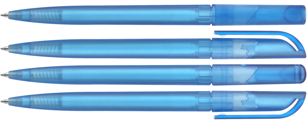 Drehkugelschreiber mit transparent gefrostetem Gehäuse.