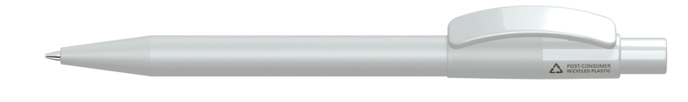 Druckkugelschreiber mit gedeckt mattem Kunststoffgehäuse aus 100% recyceltem Post-Consumer-Kunststoff, glänzendem Bogenclip und Drücker. Das Modell ist mit dem Recyclingzeichen gekennzeichnet. Drücker optional in verschiedenen gedeckt glänzenden Farben (Standard ABS) erhältlich. Dank der europäischen und ClimatePartner-zertifizierten Produktion leistet der uma PIXEL RECY einen zusätzlichen nachhaltigen Beitrag zur Schonung der Umwelt. Aufgrund der Besonderheit des Materials (Post-Consumer Recycled Plastic) sind produktionstechnische Farbschwankungen gegeben.