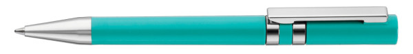 Drehkugelschreiber mit gedeckt glänzendem Gehäuse. Eingelassene Ringe, Stopfen im Oberteil,... mehr