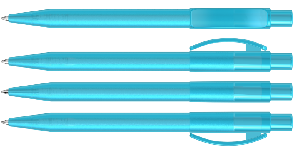 Druckkugelschreiber mit gefrostetem Gehäuse, glänzend transparentem Bogenclip und Drücker. mehr
