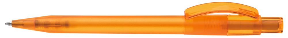 Druckkugelschreiber mit gefrostetem Gehäuse, glänzend transparentem Bogenclip und Drücker. mehr