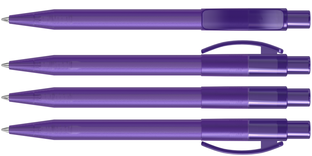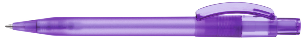 Druckkugelschreiber mit gefrostetem Gehäuse, glänzend transparentem Bogenclip und Drücker. mehr