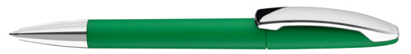 Drehkugelschreiber mit Softtouch-Gehäuse, Metallclip und Spitze glanzverchromt.