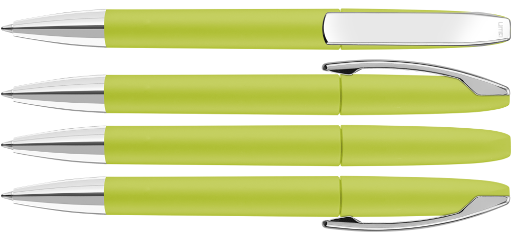 Drehkugelschreiber mit Softtouch-Gehäuse, Metallclip und Spitze glanzverchromt. mehr