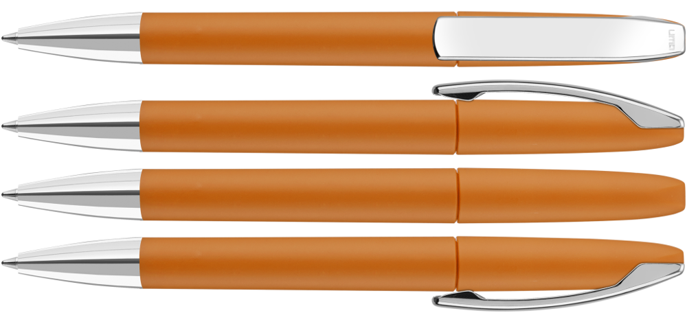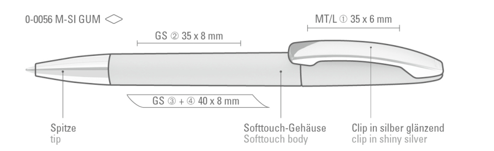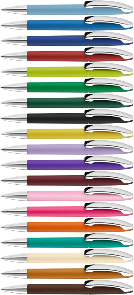 Drehkugelschreiber mit Softtouch-Gehäuse, Metallclip und Spitze glanzverchromt. mehr