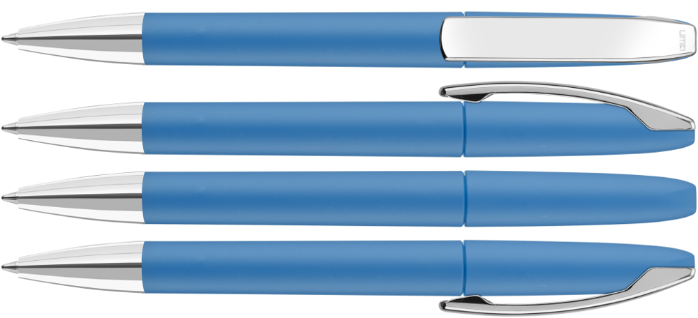 Drehkugelschreiber mit Softtouch-Gehäuse, Metallclip und Spitze glanzverchromt. mehr