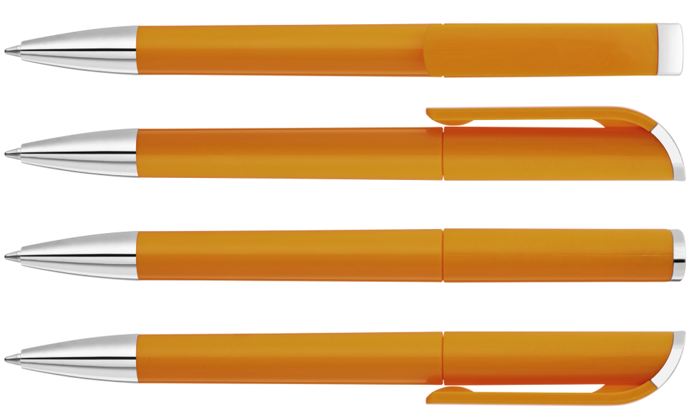 Drehkugelschreiber mit gedeckt glänzendem Gehäuse, Stopfen und Spitze glanzverchromt. mehr