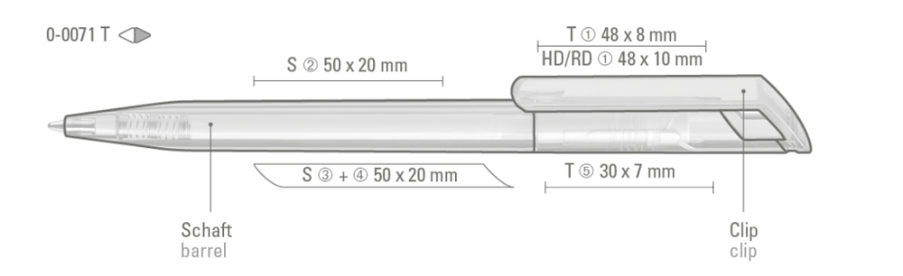 Drehkugelschreiber mit transparent glänzendem Gehäuse. mehr