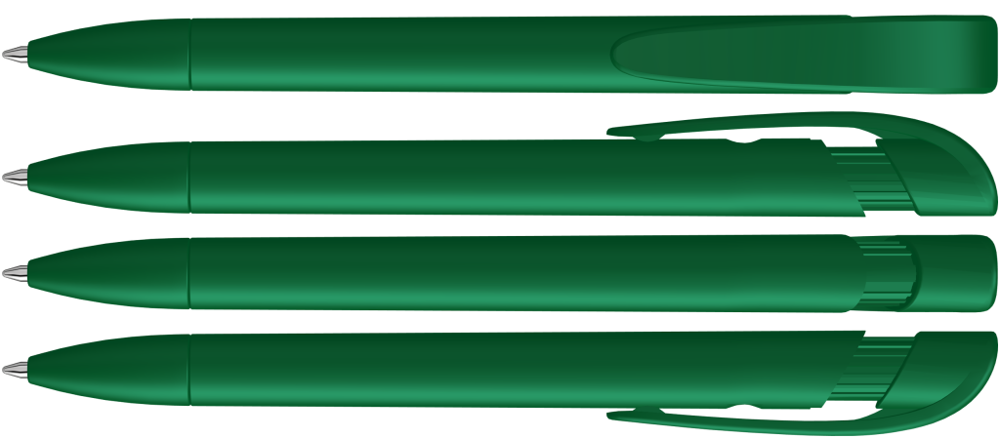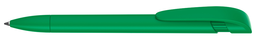 Druckkugelschreiber mit gedeckt mattem Gehäuse, breitem Bogenclipdrücker und Spitze. mehr