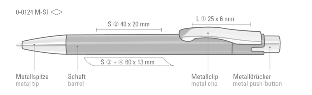 Druckkugelschreiber mit gedeckt glänzendem Gehäuse, schwerer Metallspitze, Metalldrücker und... mehr