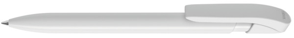 Druckkugelschreiber mit gedeckt glänzendem Gehäuse in uni weiß oder schwarz und farbig... mehr