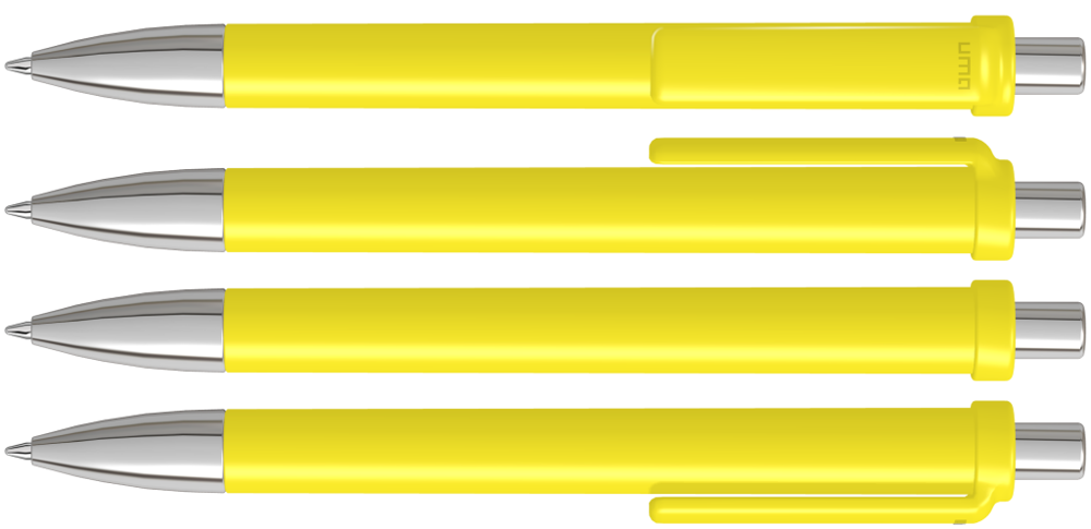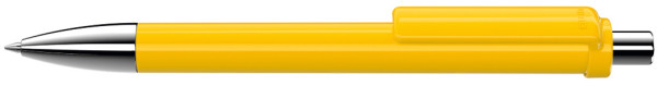 Druckkugelschreiber mit gedeckt glänzendem Schaft und Clip, Metallspitze und Metalldrücker glanzverchromt.