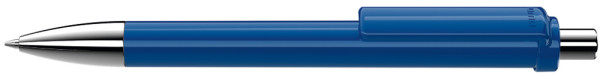 Druckkugelschreiber mit gedeckt glänzendem Schaft und Clip, Metallspitze und Metalldrücker glanzverchromt.
