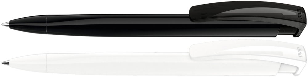 Druckkugelschreiber mit gedeckt glänzendem Dreikantgehäuse.