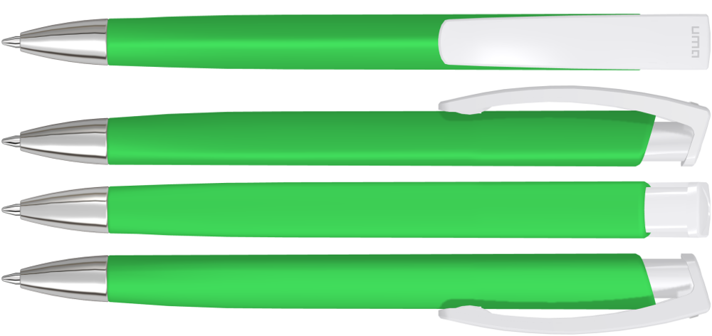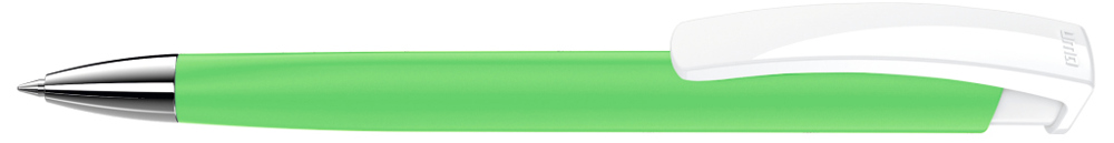 Druckkugelschreiber mit gummiertem Dreikantgehäuse, weiß gedeckt glänzendem Clip und schwerer... mehr