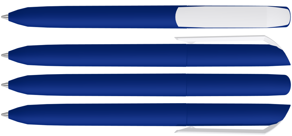 Drehkugelschreiber mit Softtouch-Gehäuse und gedeckt glänzendem Clip in weiß.