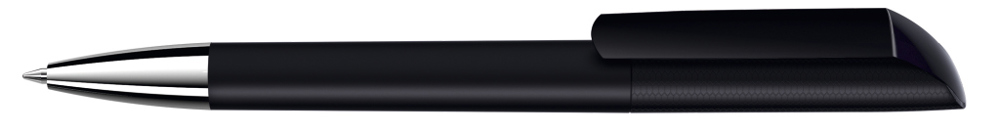 Drehkugelschreiber mit Softtouch-Gehäuse und gedeckt glänzendem Clip, Spitze glanzverchromt.