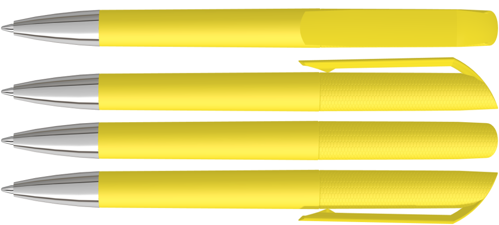 Drehkugelschreiber mit Softtouch-Gehäuse und gedeckt glänzendem Clip, Spitze glanzverchromt.