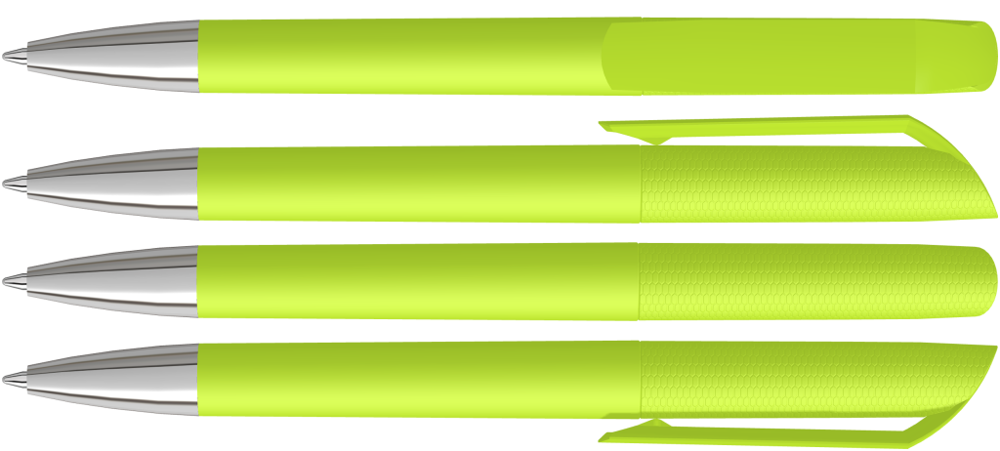 Drehkugelschreiber mit Softtouch-Gehäuse und gedeckt glänzendem Clip, Spitze glanzverchromt.