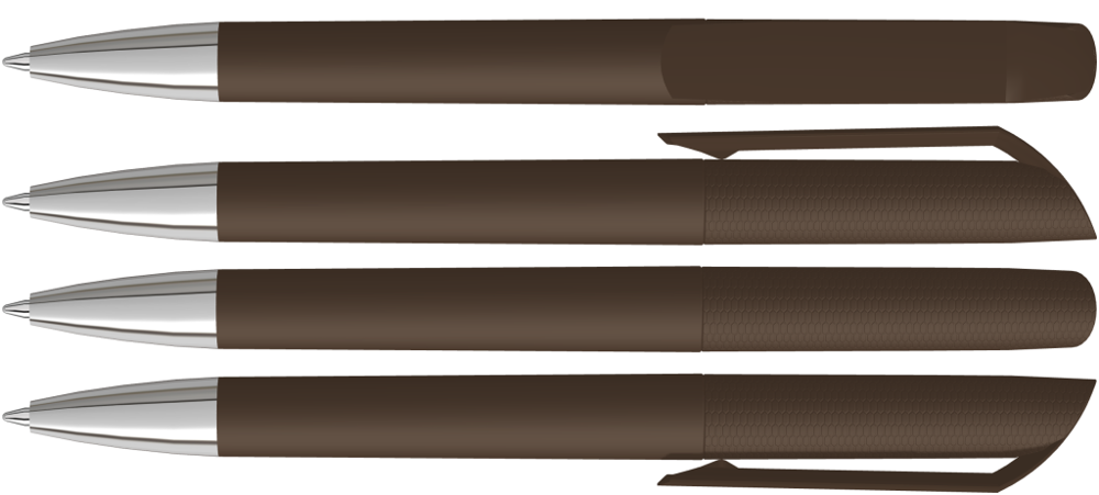Drehkugelschreiber mit Softtouch-Gehäuse und gedeckt glänzendem Clip, Spitze glanzverchromt.