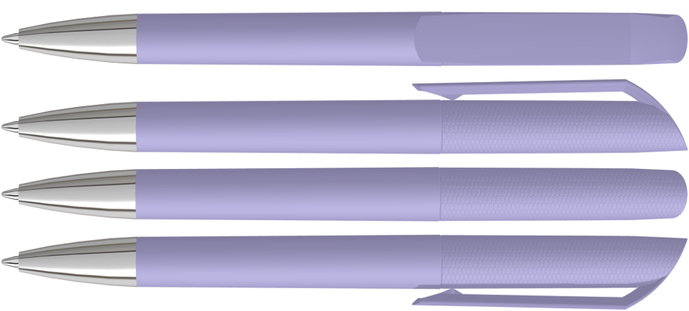 Drehkugelschreiber mit Softtouch-Gehäuse und gedeckt glänzendem Clip, Spitze glanzverchromt.
