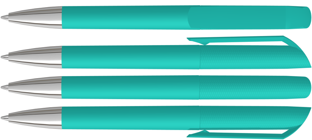 Drehkugelschreiber mit Softtouch-Gehäuse und gedeckt glänzendem Clip, Spitze glanzverchromt.